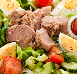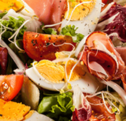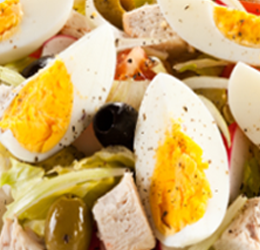 Salade, tomates, chicken tikka, maïs, oeuf.