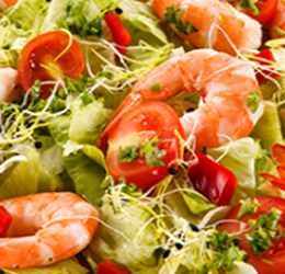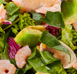Salade, tomates, avocat, crevettes, mayonnaise.